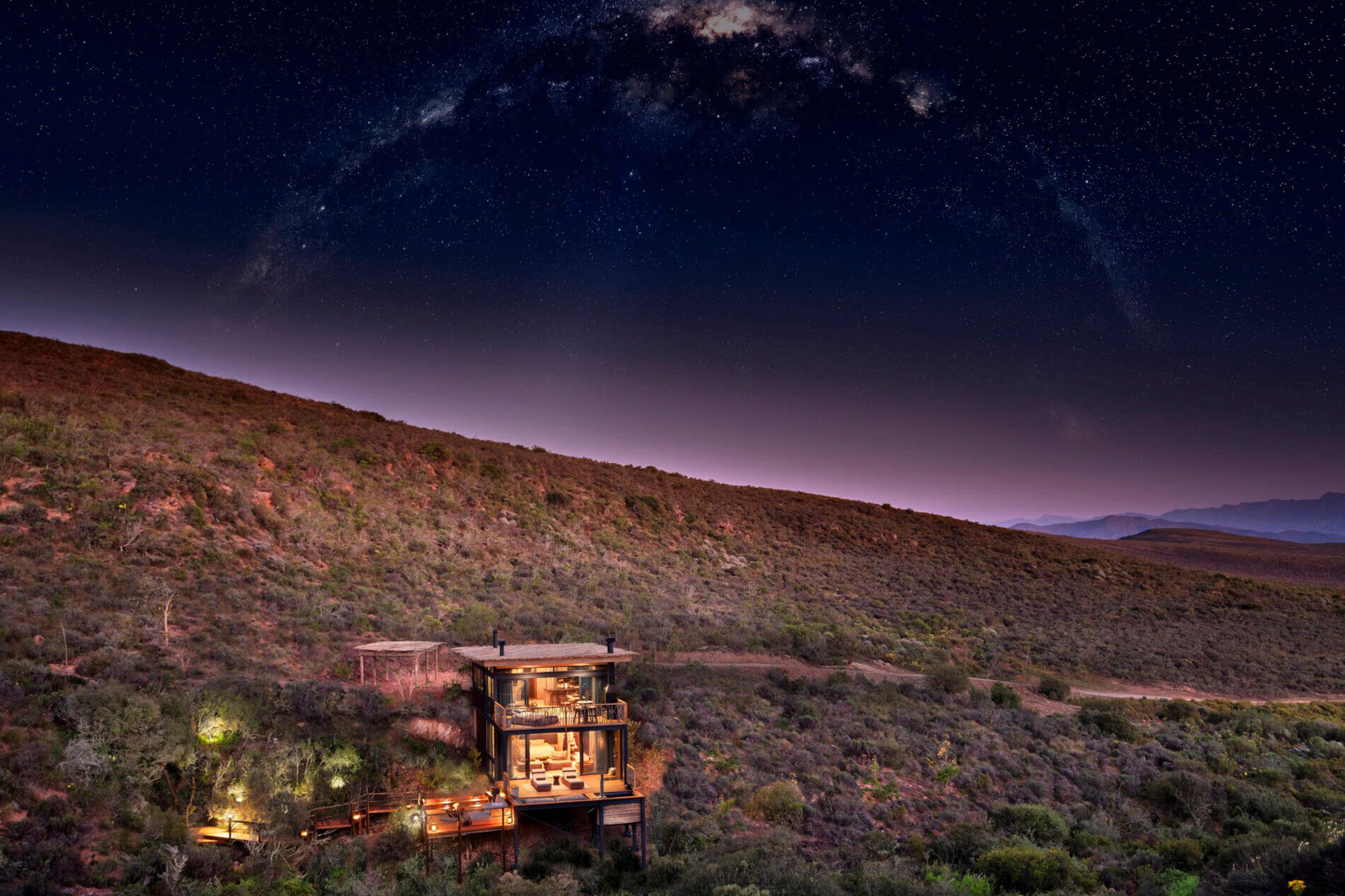Where forest meets sea, Tsitsikamma surprises with its darkness. Once the sun drops beyond the Indian Ocean, the forest canopy frames a sky that feels cinematic. You hear the surf, smell the salt and look up to find a galaxy hanging over ancient yellowwoods. The combination of coastal moisture and clear air after winter rains often produces particularly crisp nights. This stretch of the Garden Route is famed for eco-adventure, but at night it becomes contemplative, a natural planetarium in surround sound. The Tsitsikamma Pyramid, a geometric glass-roofed stay, was designed for exactly this. Lie back in bed while stars multiply overhead. It’s restrained luxury with a celestial ceiling. Wake before dawn and you’ll catch Venus rising through the mist, forest silhouettes turning blue and the first hornbill call echoing through the trees.